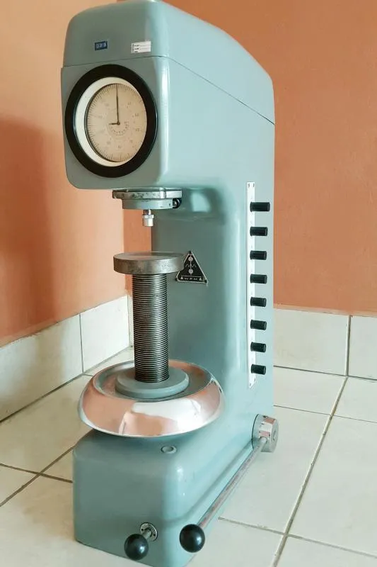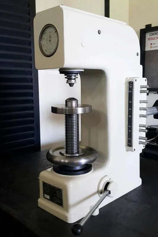 O Durômetro Rockwell é muito usado por ser um equipamento de fácil operação e de leitura direta no indicador.