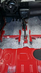 - Desmontagem do Interior do veículo, retirada do carpete e remoção do feltro danificado(causa do mal odor)