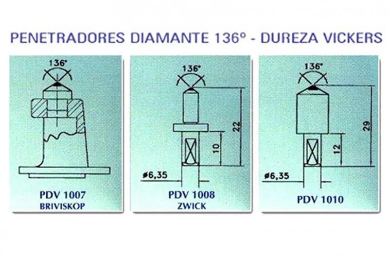 - Medição na escala Vickers: diamante piramidal com o ângulo de 136º.