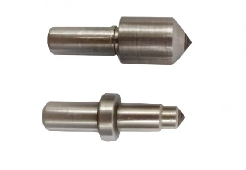 Cone de diamante: Pode ser de diamante natural ou sintético. Em função das dificuldades de se encontrar o diamante natural, algumas empresas estão utilizando diamantes sintéticos ou artificiais. O diamante natural, no entanto, apresenta características mais estáveis para a aplicação em questão.